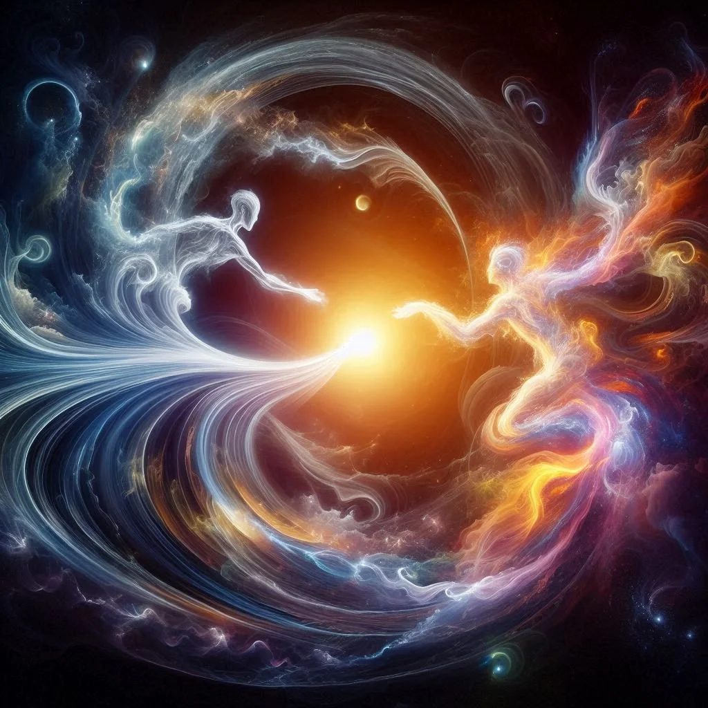The first statement reflects the Fact that God is the Source of All That Is. Everything that exists comes from the Source. All Life comes from God. God is the ‘fabric’ of existence itself … and this ‘fabric’ vibrates at the frequency of LOVE. God … is Love … and LIFE itself. Therefore, Man is made of the ‘fabric’ of God … ‘in the likeness and image of’ Source Itself.